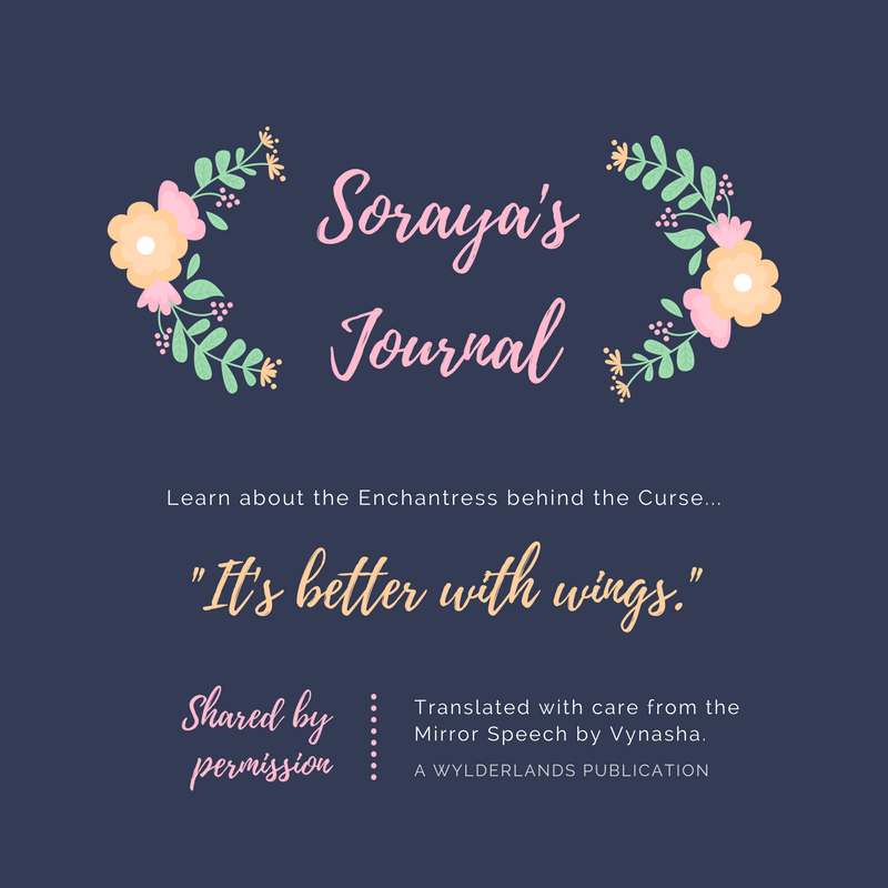 I suppose it best to finish an enchanted text with a proper introduction. After all, the spells shall not take effect without the name of the caster. Everything begins with a name. My name was Soraya Wenderdowne and I was born to the most noble royal house among all the Fayere of Lunnae. The other peoples call us “lightwings,” but only the royal houses still bore wings of honor. I had always been proud of my wings. Not only were they my most beautiful feature (and trust me when I tell you I was not unpleasant to look upon) but my wings allowed me to fly…